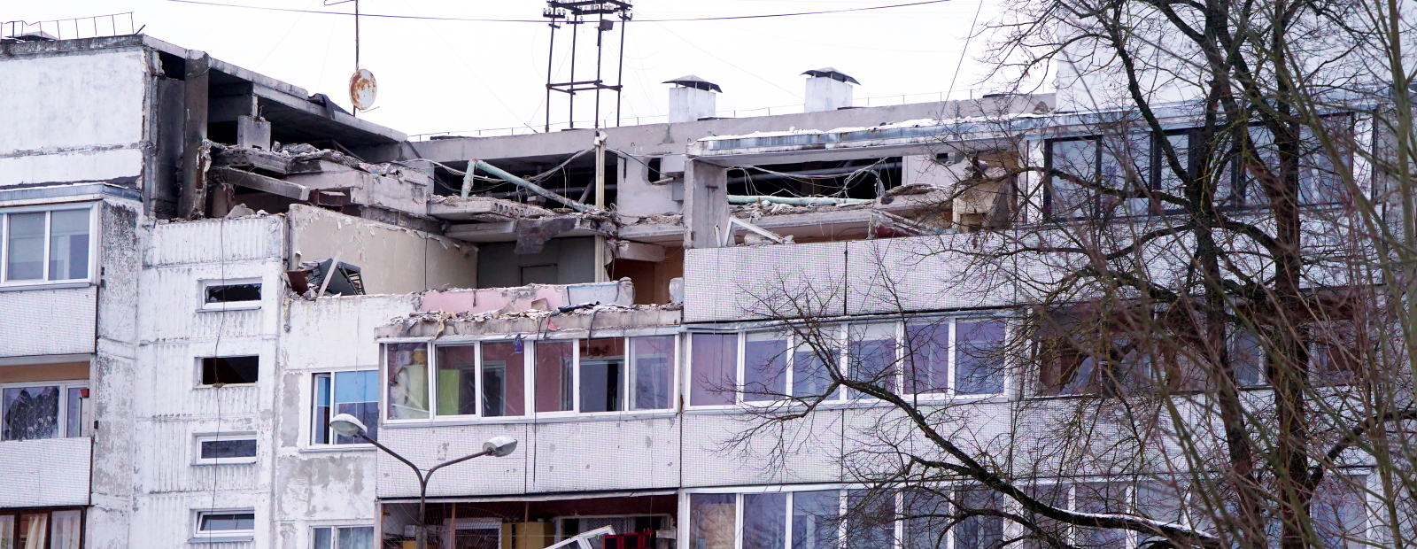 Sprādziens piecstāvu dzīvojamā mājā notika nelegāli sabojāta gāzes vada dēļ. Sprādzienā daļēji sagruvis ēkas ceturtais un piektais stāvs, kā arī jumts.